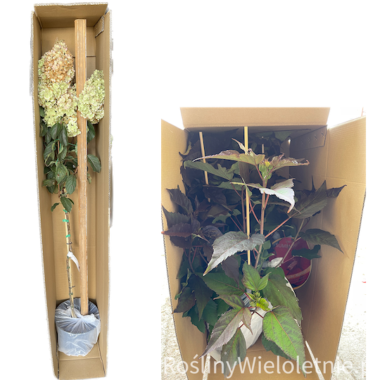 Rośliny pakujemy w bezpieczny i sprawdzony sposób. Rośliny są pakowane w grube kartony. Kijki zabezpieczają przemieszczanie się roślin w pudelku.